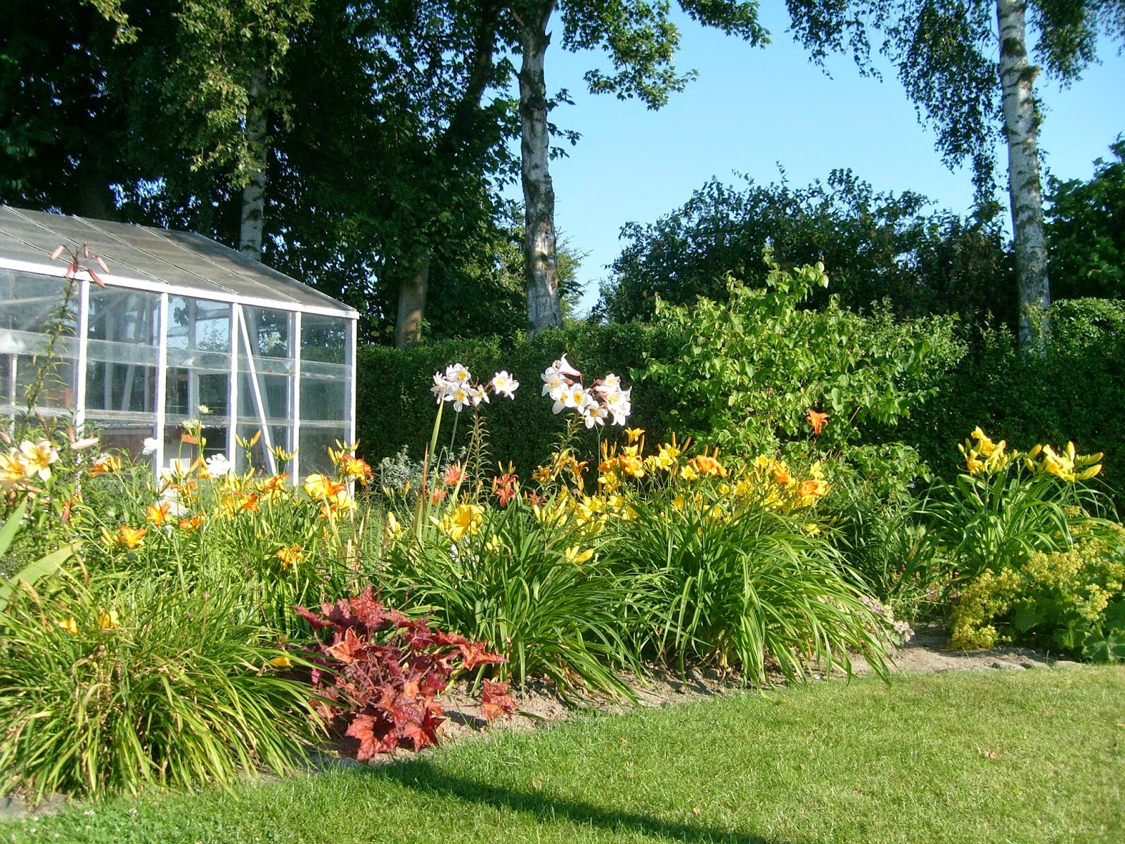 Dagliljerne - som har blomstret flittigt - er ved at takke af for denne gang. Det øverste foto er fra den 23. og det nederste er fra den 17.